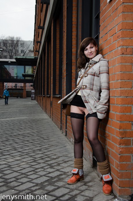 Sexy model Jeny Smith is once again being an exhibitionist in the city. In this photo set, she was outdoors wearing a short mini skirt and some boots. She wasn’t wearing panties of course! Join JenySmith.net to get access to ALL her hot videos & pic sets.