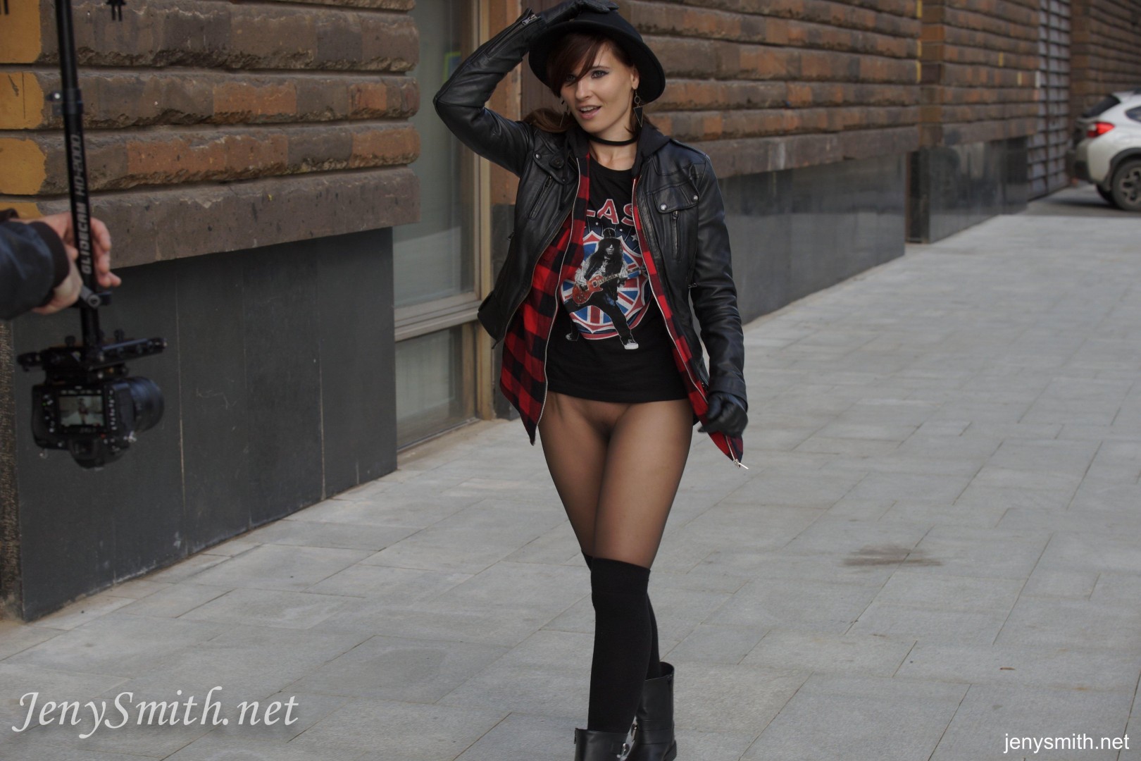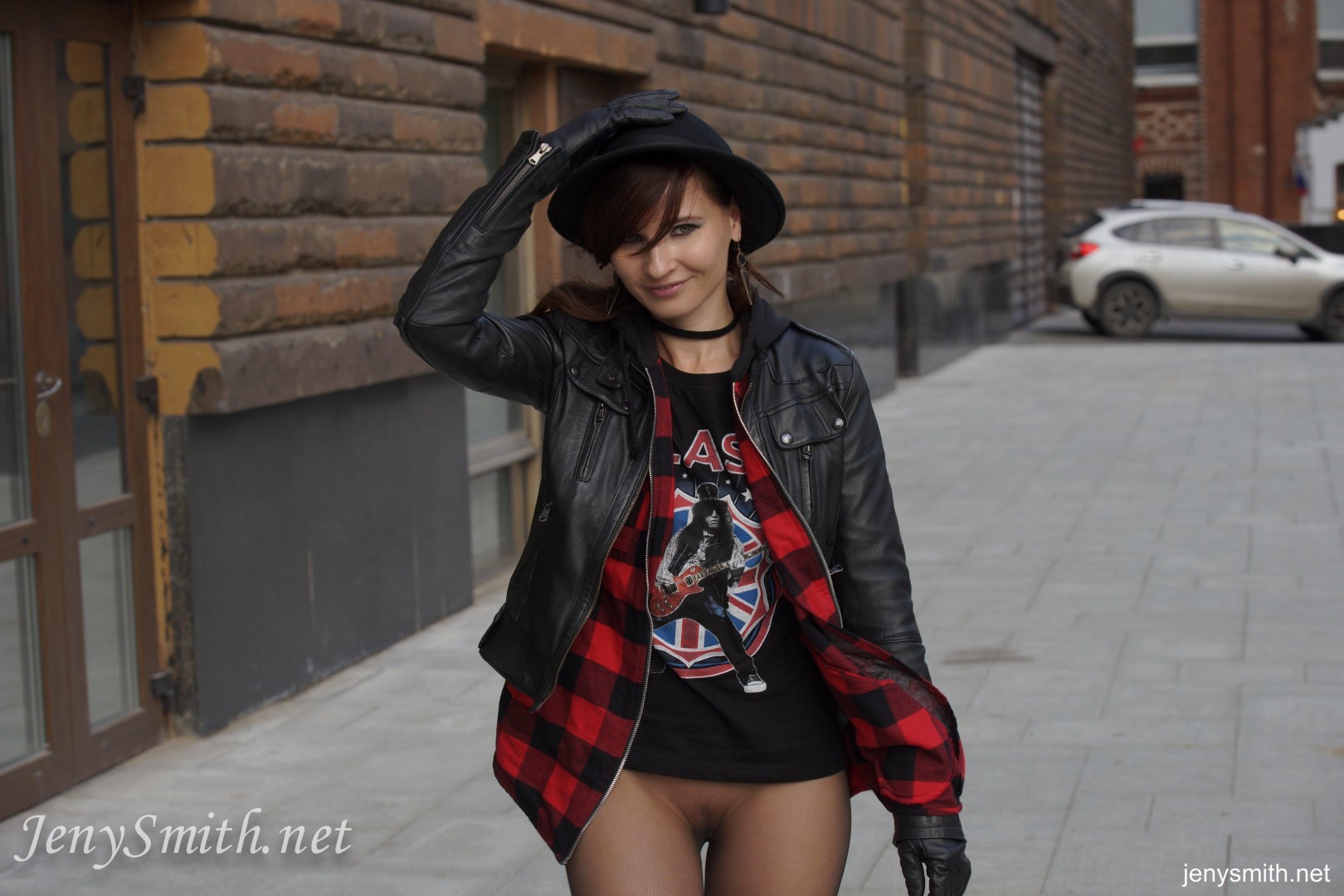 Sexy Russian glamour model Jeny Smith is one of the most beautiful babes from Europe. She normally likes to dress in very sexy and classy clothes in her photo shoots. Sometimes though, Jeny likes to dress like she’s at a rock concert. In this photo set, Jeny is wearing a shirt from Slash, the guitarist from her favorite band, Guns n Roses. Watch as Jeny strips down to her sheer stockings to reveal her amazing natural breasts and shaved pussy. Jeny Smith is producing some of the most tasteful erotic content and she is easily one of the sexiest European erotic models. She is one of the top models doing public flashing / exhibition shoots. Visit her official site to see all of her high resolution photos and videos.