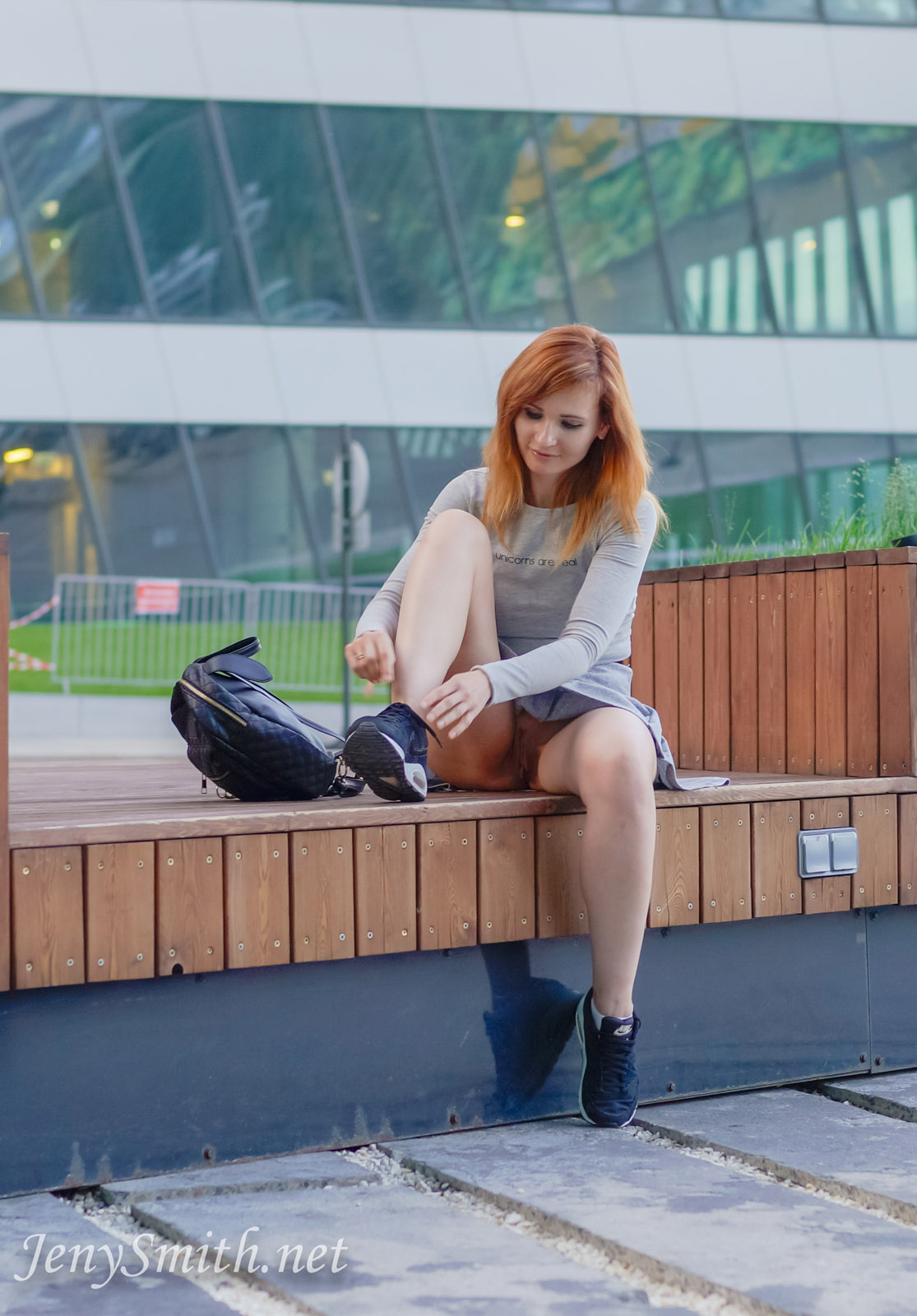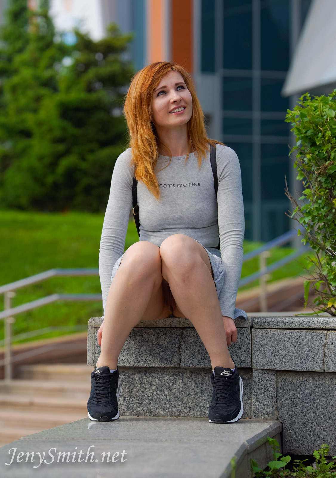 Beautiful amateur model Jeny Smith is a gorgeous brunette babe from Russia. She is a top amateur model producing her own content. Jeny creates erotic art in public. In this photo set, Jeny is outside wearing a grey skirt (with no panties) and black athletic shoes. It was a windy day so her skirt was lifting up to show her sexy ass. She then sits on the stairs and flashes her shaved pussy. Finally, Jeny goes out to the woods where she can pull up her skirt and flash her tits. This is another beautiful outdoor photo set from Jeny Smith. She has many more photo sets & videos posted on her website. Jeny creates some of the best public flashing erotic art in the world. Jeny has become a top amateur nude model who gets naked in public places. Be sure to add Jeny on Snapchat! If you like public flashing, be sure to visit her main website to see all of her high resolution photos and videos.